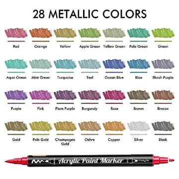 28 Metallic Colors Dual Tip Acrylic Paint Markers – Perfect for All Surfaces!