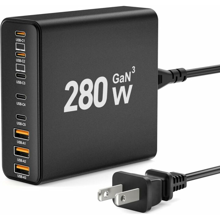 280W GaN III USB-C Charger Block - 8-Port Fast Charging