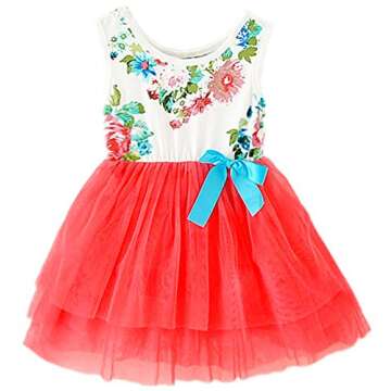 2Bunnies Baby Girls Toddler Sleeveless Floral Princess Dress Tulle Tutu Sundress (12M, Candy Red)