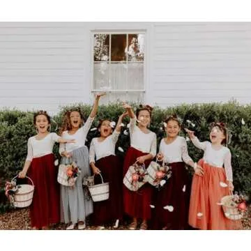 2Bunnies Girl Peony Lace Back A-Line Straight Tutu Tulle Party Flower Girl Dress (Burgundy Long Sleeve Maxi, 5)