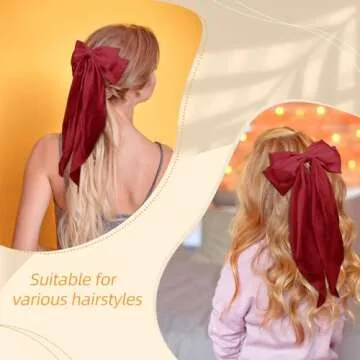 2PCS Big Oversized Silky Satin Hair Bows with Long Tail Ribbon for Women and Girls