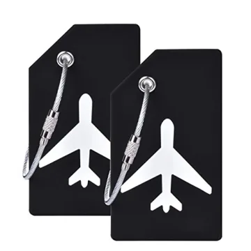 Set of 2 Black Silicone Travel Luggage Tags - Durable & Stylish ID Labels