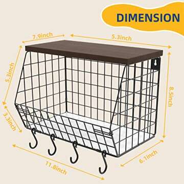 Show more Introducing the ultimate storage solution for every home, this beautifully designed hanging basket set combines functionality with aesthetic appeal. Crafted from durable wood, these baskets are not only sturdy but also offer a larger capacity than most competitors, making them perfect for everything from fruits and vegetables to pet supplies. The set features easy-to-assemble pieces that allow you to mount them securely on any wall, providing both decorative and practical purposes. Imagine decluttering your space while adding a touch of rustic charm - that's what this product promises to deliver.