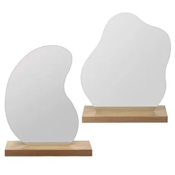 Unlike many traditional makeup mirrors, our 2pcs Irregular Aesthetic Mirrors stand out for their quirky shapes and lightweight design. While some competitors offer rigid and more standard mirrors, our acrylic approach allows for a flexible setup without sacrificing visual clarity. Additionally, the inclusion of stylish wooden bases adds a layer of elegance that many other brands overlook.