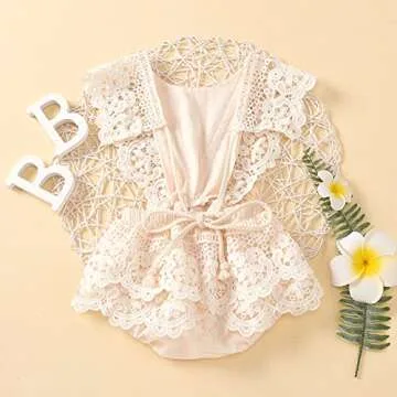 2Pcs Newborn Baby Girl Lace Ruffles Sleeve Bodysuits Backless Jumpsuit Clothes Romper Set (Lace, 12-18 Months)