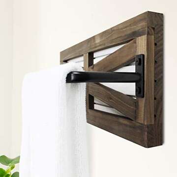 Show more Elevate your bathroom's aesthetic with our **2PCS Rustic Towel Racks for Bathroom Wall Mounted**. Crafted from premium solid wood and a durable metal bar, these towel racks embody the essence of rustic farmhouse decor, seamlessly blending style and functionality. The beautifully finished barn wood in a rich brown hue creates a warm and inviting ambiance perfect for any western or country-inspired bathroom. Designed not only for its looks, this towel rack is a versatile solution to keep your towels conveniently at hand, whether you're decorating a spa, hot tub, or even your kitchen.
