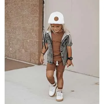 2PCS Summer Toddler Baby Boy Girl Clothes Set Unisex Waffle Solid Short Sleeve Tops Pocket Drawstring Shorts Outfits (Camel, 3-4T)