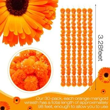 3.3 ft Marigold Garland Flower Garland Decorations Artificial Marigold Flower Traditional Indian Decor Long Strand Garland for Diwali Pooja Wedding House Decor (30, Dark Orange)