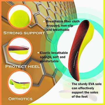 3/4 High Arch Support Insoles for Men/Women, Plantar Fasciitis Insoles, Orthotic Flat Feet, Over-Pronation | Relief Plantar Fasciitis, Heel Pain(Orange, XL:Men 9-11/Women 10-12)