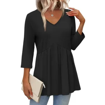 Show moreIntroducing the ultimate wardrobe staple for the modern woman – our **3/4 Length Sleeve Womens Tops**! This versatile blouse is crafted from a lightweight and soft fabric, offering you unparalleled comfort that transitions seamlessly through all four seasons. With its chic babydoll design featuring a graceful V neck and flowy silhouette, this top not only flatters your figure but also embraces a trendy, dressy-casual vibe perfect for any occasion. Enjoy the comfort of wearing this stylish piece whether you're at work, heading to a beach outing, or enjoying a night out with friends.