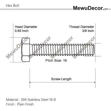 The hex bolts are made of High Quality Grade 18-8 (304) Stainless Steel.