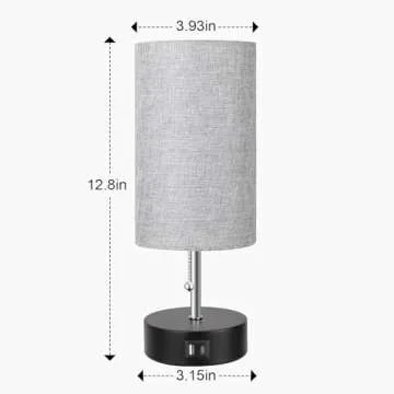 3-Color Temperature Bedside Lamp Nightstand Lamp with USB A Port and C Port, Table Lamp for Bedroom with LED Bulb Small Lamps for Living Room (Gray)