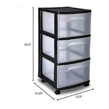 3 Drawer Organizer Cart - Black Plastic Craft Storage Bin Set with Wheels