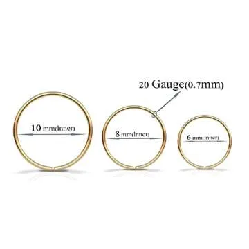 3 Gold Hoop Earrings | Small 14k Gold Filled Loop Earrings | 20 Gauge Wire Thickness | Hypoallergenic Earrings | Sensitive Earrings for Women | 3 Different Sizes 6, 8, 10mm Hoops Diameter