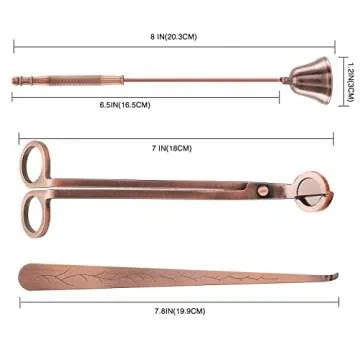 Show moreDiscover the ultimate candle care experience with the 3 in 1 Candle Accessory Set. Designed for true candle enthusiasts, this elegantly packaged set includes a candle wick trimmer, a candle wicks snuffer, and a wick dipper, all crafted in a stunning copper finish. Each item serves a unique purpose, ensuring that your candle burning is not only beautiful but also safe and efficient. Whether you’re an occasional candle user or a passionate collector, this set enhances your candle experience to a whole new level.