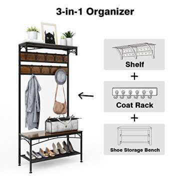 3-in-1 Entryway Coat Rack - Rackaphile Vintage Design with Storage Bench