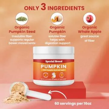 3-in-1 Pumpkin Powder for Dogs (16 oz) - with Organic Pumpkin, Pumpkin Seed, & Apple, All Natural Dog Digestive Support, Great Balance of Soluble and Insoluble Fiber for Dogs, 60 Scoops