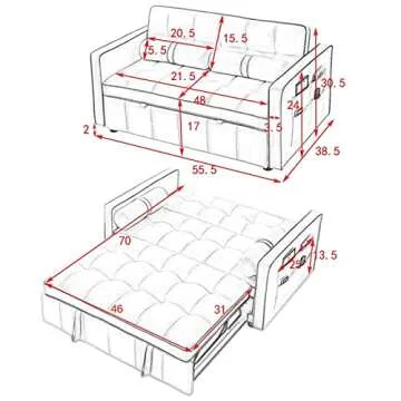 3 in 1 Sleeper Sofa Couch Bed, Small Tufted Velvet Convertible Loveseat Futon Sofa w/Pullout Bed, Adjustable Backrest, Cylinder Pillows for Living Room Apartment, Easy to Assemble, Grey, 55.5"