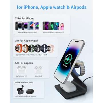 - Compatible with Apple Ecosystem: Designed for iPhone 14/13/12, Apple Watch, and AirPods Pro/3/2.