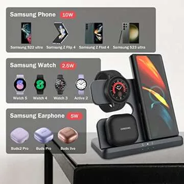 3 in 1 Wireless Charger for Samsung,Samsung S23 Ultra Charger for S24ultra/S22Ultra/S23/Z Fold4/Flip4/Google Pixel,Galaxy Watch6/6 classic/5/4 Charger,Wireless Charging Station for Galaxy Buds Black