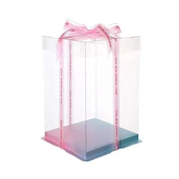 3 Layer Tall Transparent Cake Box 8" Bakery Carrier Packing with Lids, 2 Pack Clear Box for Wedding, Birthday, Anniversary Display Pack Box, Gradient Ramp Base
