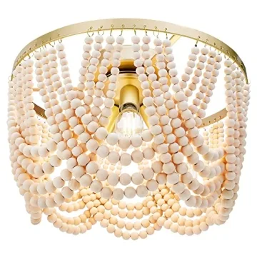 Transform your living space into a haven of style and warmth with the 3-Light Boho Wood Beaded Chandelier Light Fixture. This beautifully crafted chandelier seamlessly mixes contemporary design with bohemian charm, making it an ideal choice for any home. Influenced by timeless Bohemian aesthetics, it boasts exquisite oak wood beads intricately arranged across a durable gold metal bracket, uniquely illuminating your rooms while casting stunning shadows that enhance the ambiance...