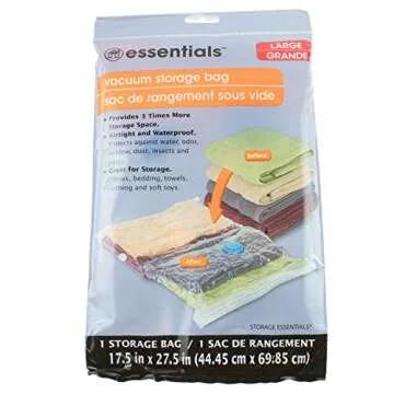 Show moreIntroducing the ESSENTIALS Large Vacuum Storage Bag, your ultimate solution to maximizing closet space and keeping your belongings organized! Measuring a generous 17.5 in x 27.5 in, these bags are designed for efficiency and convenience. Made from high-quality, durable materials, they are perfect for storing everything from clothing to bedding, ensuring they remain safe from dust, moisture, and odors. The clear design allows for easy visibility of the contents, making it simple to find what you need when you need it.