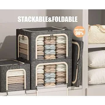 With an impressive capacity of 66 liters (19.7(L) x 15.7(W) x 13(H) in), these bins are ideal for accommodating everything from king-sized sheets to bulky winter sweaters. The unique structure includes a sturdy internal metal frame that not only maintains the shape of the bins but also enables effortless stacking without deformation. Enjoy a clutter-free space as you optimize your storage solutions at home.