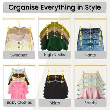 3 Pack Gold Skirt Hanger with Silicone Capped Clips, Adjustable Skirt Hangers for Women with Rotatable Hook, Anti-Slip Rubber Clips, Shorts Hangers & Pants Organizer for Closet, Leggings Hanger