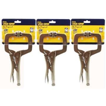 Show moreIntroducing the 3 Pack Irwin 20 Vise-Grip 11SP 11" Locking 'C' Clamps with Swivel Pads, the ultimate addition to your toolbox for all your clamping needs. These specially designed clamps feature a robust, ergonomic design that allows for easy one-handed operation, making them ideal for both professionals and DIY enthusiasts. The unique swivel pads of these locking clamps provide a secure grip while minimizing damage to your workpieces. Crafted from high-grade steel, they promise durability and reliability in every project, ensuring you always have a strong, steadfast grip wherever you need it.