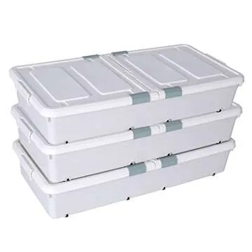 3 Pack Large Rolling Under Bed Storage Bin With Wheels, Sliding Underbed Plastic Containers With Lid Open From Both Sides. 37 x 19 x 7.3 inches