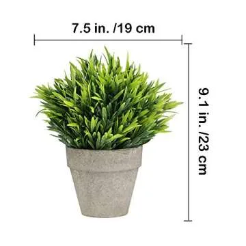 Show more Transform any space into a cozy sanctuary with our exquisite pack of Mini Potted Plants. Featuring an assortment of lifelike artificial greenery, this delightful set includes eucalyptus, luohan grass, and seven-layer grass, each beautifully arranged in its own elegant paper mache pot. Each plant stands about 9.1 inches tall and spans approximately 7.5 inches wide, striking the perfect balance for any tabletop or shelf.