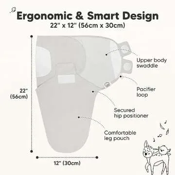 Show more The KeaBabies Soothe Baby Swaddle Sack is designed with care and precision, catering to the unique needs of newborns and their parents. This exceptional product is certified as a hip-healthy option by the International Hip Dysplasia Institute (IHDI), ensuring that your little one’s growth and comfort are prioritized. Crafted from ultra-soft, organic cotton, this swaddle ensures your infant’s delicate skin is treated with the utmost gentleness while promoting a breathable and temperature-regulating environment.