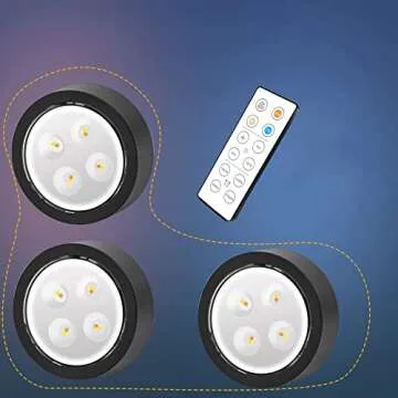 3-Pack Picture Light Battery Operated, Magnetic Led Lights with Remote, Dimmable and Timer Painting Light, Art Display Light for Picture Frame Artworking Portrait, Home Wall Decor Puck Lights, Black