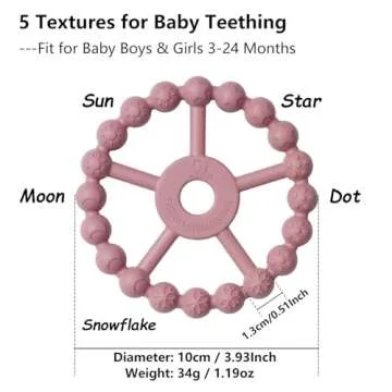 3 Pack Ring Teether Baby Infant Toys, Silicone Teething Ring Toys for Babies 0-6 Months, Seposeve Baby Teethers 6-12 Months 12-24 Months, Easy to Grasp Toy, Baby Teething Relief, Purple Pink White