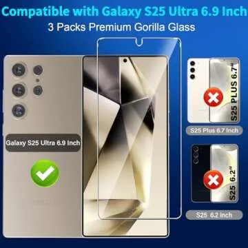 3 Pack Screen Protector for Samsung Galaxy S25 Ultra 6.9 Inch, 9H Tempered Glass, Ultrasonic Fingerprint Unlock, Case Friendly Tempered Glass Screen Protector for Samsung Galaxy S25 Ultra