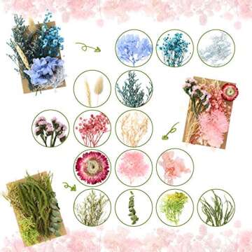 3 Packs Natural Dried Flowers Leaves Set, Dried Flowers for Resin Mold, Mixed Colorful Real Dry Flower for DIY Candle Jewelry Pendant Crafts Floral Decoration