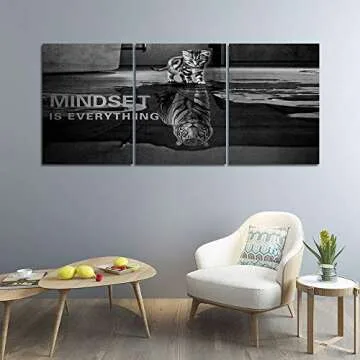 3 Panels Mindset is Everything Motivational Canvas Wall Art Inspirational Entrepreneur Quotes Poster Print Artwork Painting Picture for Framed Home Decoration Living Room office bedroom 60''W x 28''H