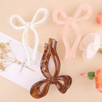 Show moreIntroducing the exquisite 3 Pcs Bow Hair Clips – the perfect blend of elegance and functionality to elevate your hairstyle! This charming collection features three stunning colors: brown, white, and light pink, making it a versatile choice for any occasion. Each clip measures a generous 2.7 inches by 5.1 inches and is crafted from high-quality glossy plastic that elegantly reflects light, adding a touch of sophistication to your look. Designed for optimal ductility, these clips can open to a remarkable 180 degrees, making them incredibly easy to use and ideal for gathering all types of hair securely.