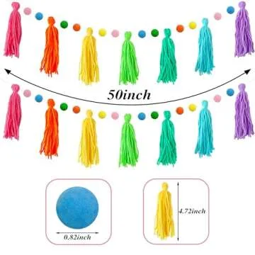 Transform your space into a festive wonderland with our 3 Pcs Colorful Rainbow Boho Tassel Garland. This cheerful decoration set is perfect for all occasions, featuring an exquisite design that brings together delightful colors for a cheerful ambiance. Carefully crafted from premium materials, these garlands combine vibrant hues and elegant tassel accents that flutter beautifully in the breeze, enhancing your home or event atmosphere. Each garland measures approximately 53 inches long with...