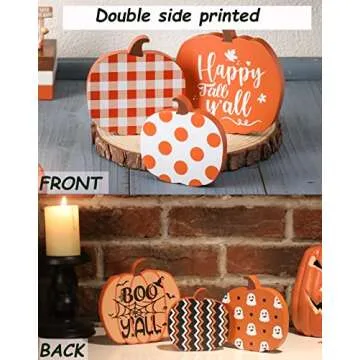3 Pcs Fall Tiered Tray Decor, Pumpkin Table Wooden Sign, Halloween Decor Double Printed Reversible Pumpkin Table Decor