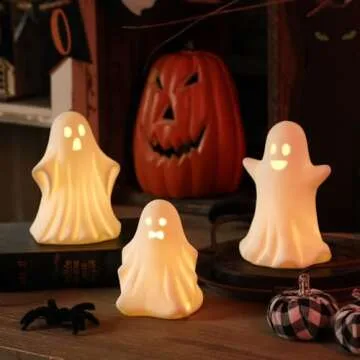 3 Pcs Gothic Ceramic Ghost Light Up - Halloween Decor for Home