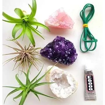 3 Pcs Tillandsia Air Plant Crystals Kit/Lot Includes Amethyst Cluster, Rose Quartz, and Crystal Geode/Terrarium Fairy Garden Stones + Kraft Gift Box