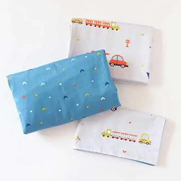 3 Piece 100% Cotton Toddler Sheet Pillowcase Set for Boys and Girls,Include Fitted Sheet,Top Sheet and Envelope Pillowcase,Cute Cartoon Pattern,Soft Skin-Friendly Breathable(Car)