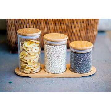 3 Piece Bamboo Airtight Glass Jar Organizer Set for Kitchen, Bathroom, Food Storage - BPA Free Eco-Friendly