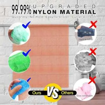 3 Piece Bright Style African exfoliating net Exfoliating Shower Set Long Bath Sponges for Smooth, Refreshed Skin, The Exterior Gleams - Ideal for Daily Use (Bright Pink, Blue, Green)