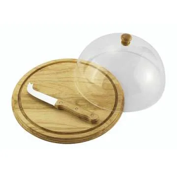 3‑Piece Rubberwood Cheese Board Set with Dome