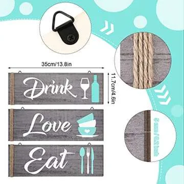 Made from high-quality wood, these signs are designed to be durable and long-lasting. The vintage-style finish complements a variety of decor themes, especially farmhouse and rustic aesthetics. Hang them individually or as a cohesive trio to create a stunning focal point in your kitchen or dining room.