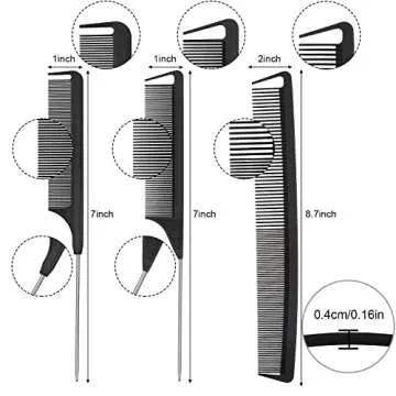 Weighing in at just the right amount, the rat tail comb measures approximately 8.7 x 2 inches while the carbon fiber cutting comb is 7 x 1 inch, making them lightweight and easy to carry, ensuring perfect usability whether you’re at home, in a salon, or on-the-go. Every set conveniently includes three combs, which are ideal for everyday hairstyling tasks while also providing ample options for you to share with friends or family.