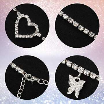 3 Pieces Rhinestone Waist Belly Chain Set for Women - Diamond Heart Butterfly Crystal Jewelry